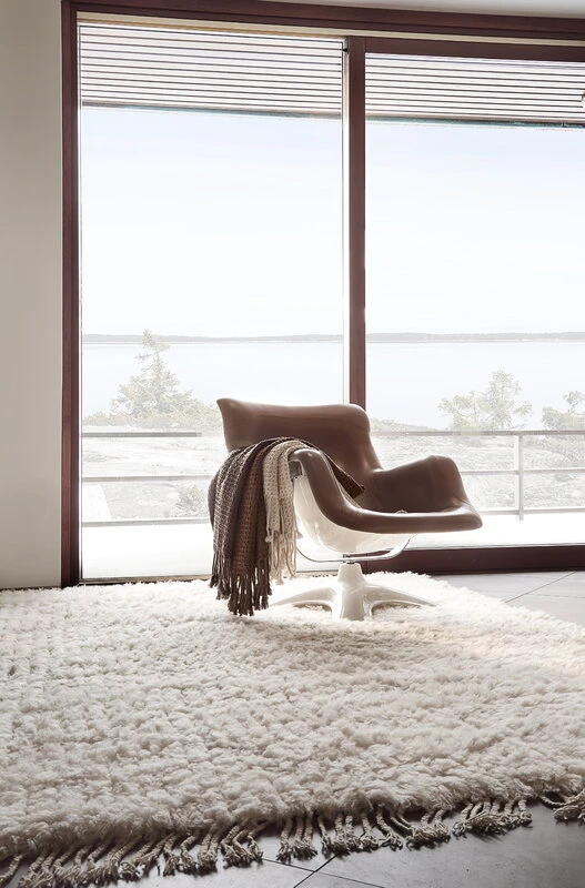 Designed by Pia Lehtovuori and named after a Finnish word for shepherd, the Paimen rug is well suited for bedrooms, living rooms and lounge areas, and the texture of its long piles feels lovely against the skin. The rug is hand-woven by Indian family-owned producers from unbleached, naturally warm-toned wool yarn. The antistatic and dirt-repellent properties make wool an excellent material for interior textiles.