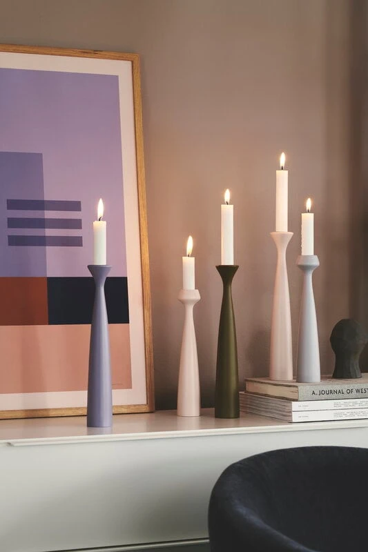 Applicata’s Blossom candles are the perfect partner for the wooden candleholders in the Blossom series, but they are also suitable for other candlesticks as well. Hand-made and hand-dyed in Denmark, the Blossom candles are made of pure paraffin wax and feature a self-extinguishing cotton wick: when the wick runs short, the flame goes out automatically. The delicate shades of the Blossom candles add an irresistibly elegant touch to both everyday and more festive table settings, and they also brighten up the interior in a bedroom or living room, for example.