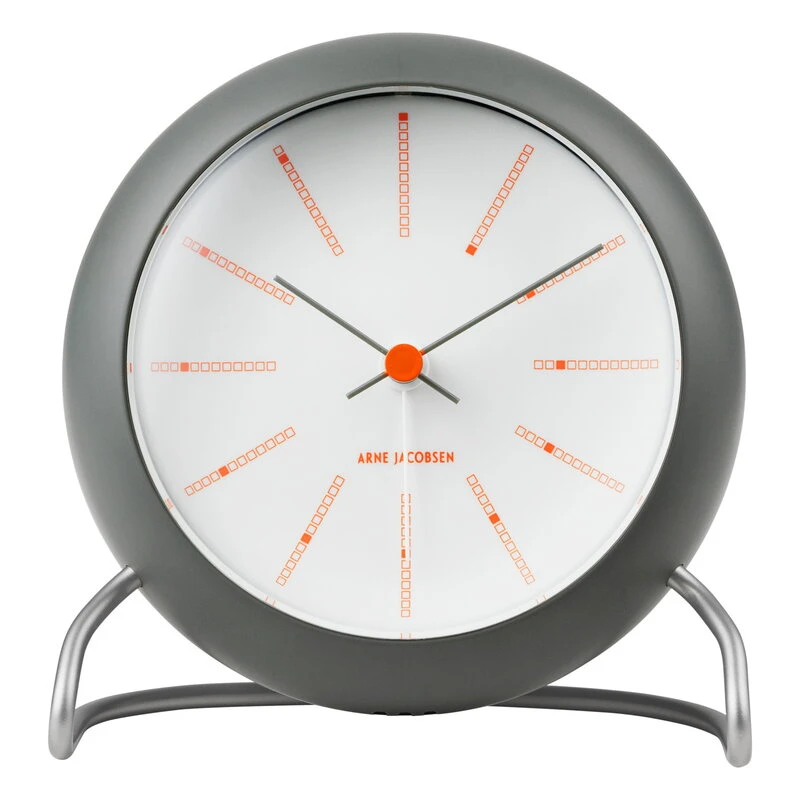 Arne Jacobsen AJ Bankers Table Clock With Alarm, Dark Grey