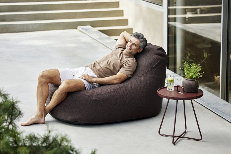 Cane-line’s Cozy beanbag chair brings a relaxed ambience both indoors and outside. The generous yet streamlined design of the beanbag adapts to the shapes of the body while its higher end supports the neck and upper body. The Cozy beanbag chair is upholstered in a sturdy, water-resistant polypropylene fabric that feels lovely against the skin. Thanks to the drain net in the bottom, you can use the beanbag chair quickly after a downpour.