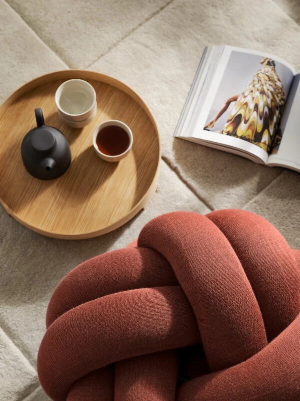 Design House Stockholm’s lovely Knot M cushion was designed by Ragnheiður Ösp Sigurðardóttir. Made of a stuffed wool tube, several meters in length, the M Knot is a slightly larger version of the traditional Knot cushion: it questions traditional seat cushions and is a delight not only on its own but also next to a sofa.