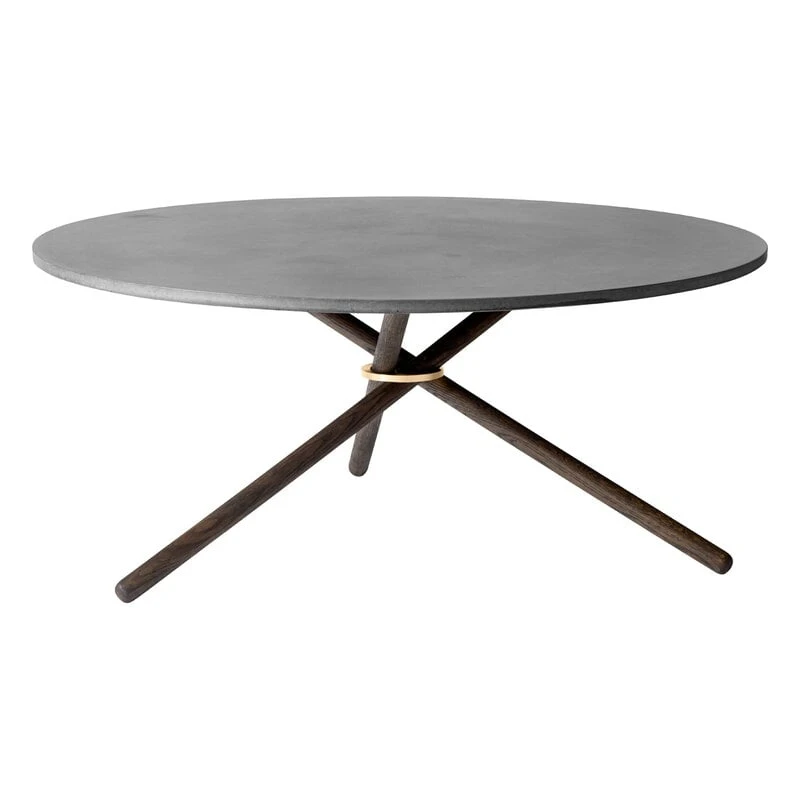Eberhart Furniture’s Edda coffee table features a simple, elegant shape perfected with eye-catching details – a brass ring supports the stunning leg structure, creating an interesting contrast with the sophisticated combination of oak and dark concrete. The round coffee table sits effortlessly into a wide range of interiors, and the natural materials exude a calm and harmonious mood. Designed to stand the test of time, the timelessly beautiful Edda coffee table is a refined addition to both private living rooms and public lounge areas alike.