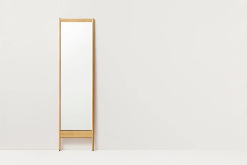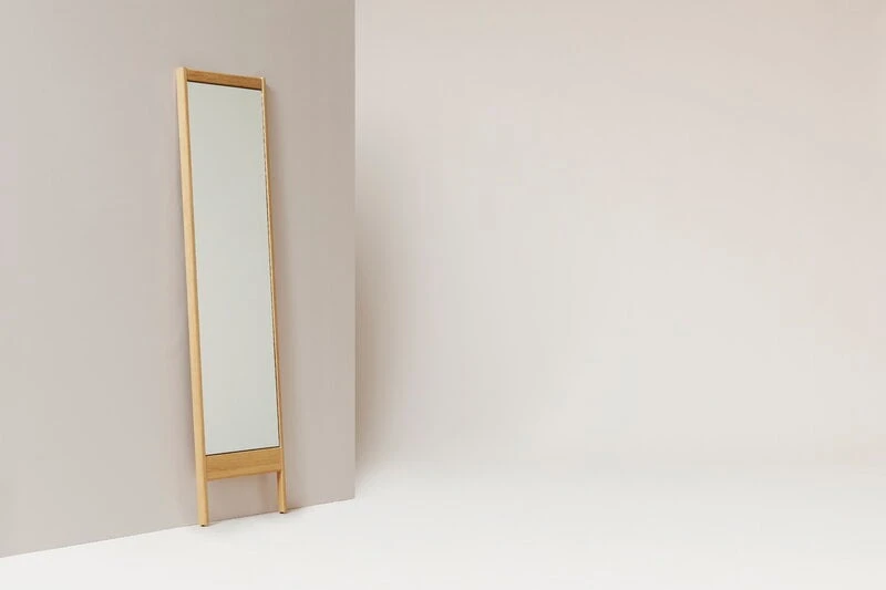 Form & Refine’s A Line mirror features a beautiful oak frame and two sturdy legs that allow the mirror to be placed against the wall. The narrow, rectangular full-length mirror can be used as a dressing mirror in the hallway or for adding a feel of space for example in the bedroom or living room.