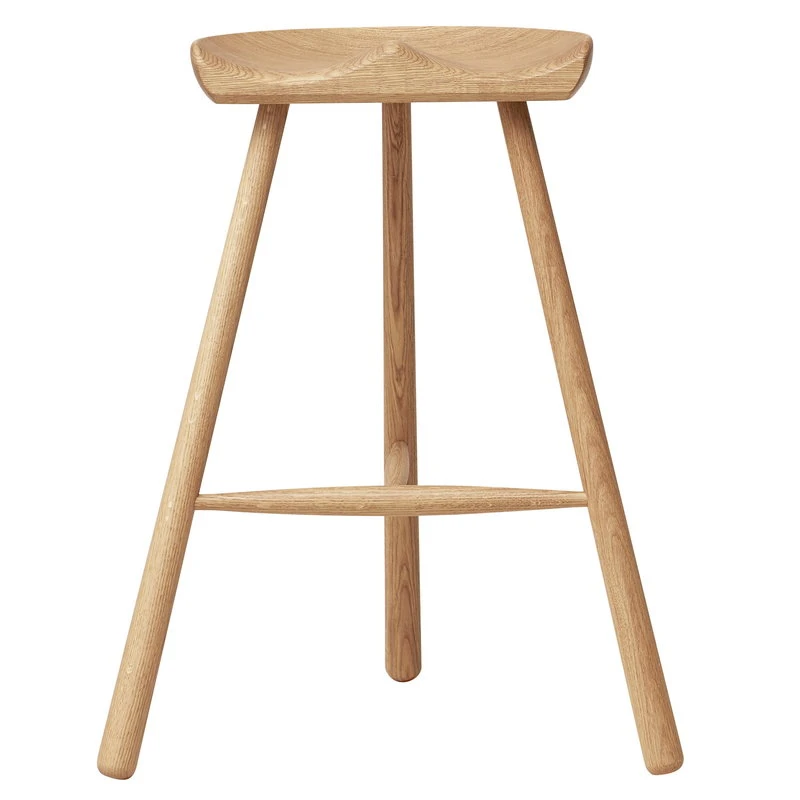 Shoemaker Chair by Form & Refine is a genuine Danish design classic that was released already in 1936. The Shoemaker Chair bar stool consists of a sleek, three-legged base and an anatomically shaped seat that provides a comfortable and straight sitting posture. Carved from a solid piece of wood, the manufacturing requires fine woodworking skills, and every process is finished by hand.