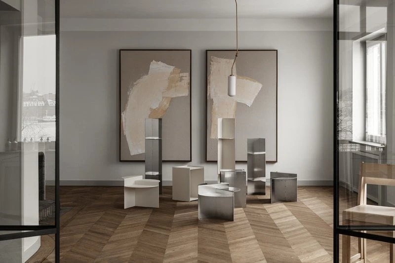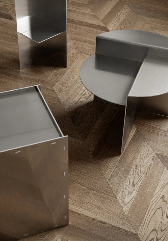 Designed by Jonas Trampedach, the objects of the Rivet collection have been constructed from laser-cut aluminium sheets that are joined together by a hand-hammering technique. The streamlined, geometric shapes of the aluminium sheets give your home a touch of industrial style. Over the years, the raw aluminium surface will develop a vivid patina, and small scratches and colour variations will become part of its natural charm.