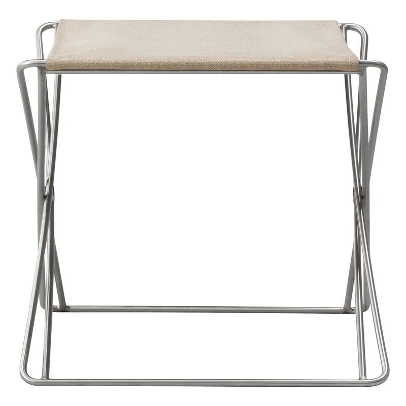 Fredericia JG Folding Stool, Brushed Steel – Natural Canvas