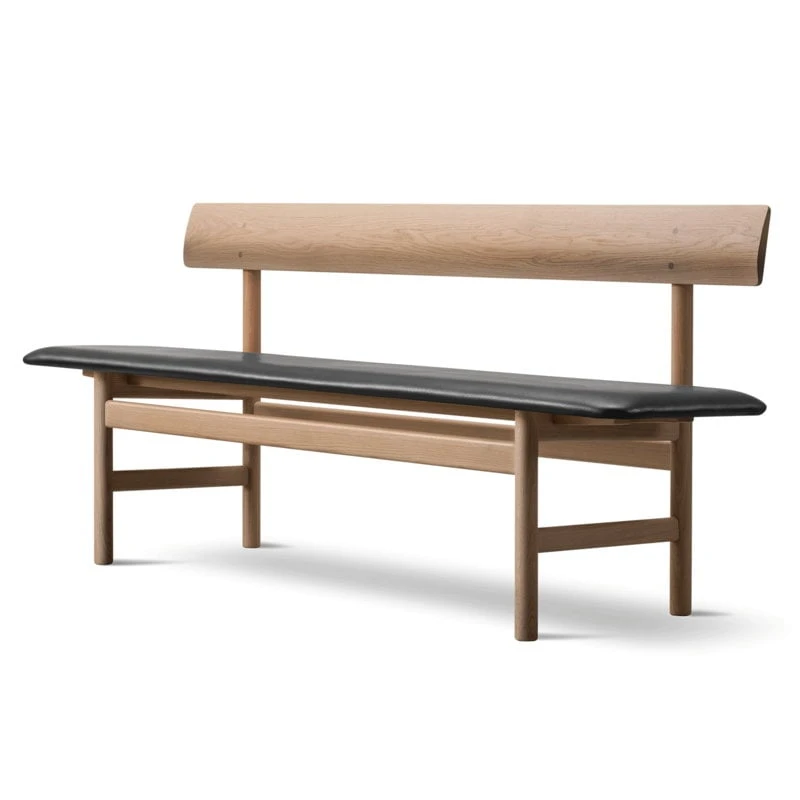 Fredericia Mogensen 3171 Bench, Oiled Oak – Black Leather