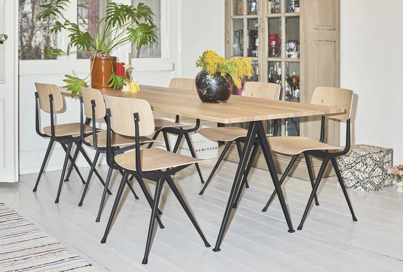 HAY’s Pyramid table 02, created by Wim Rietveld for Ahrend in the 1950s, was relaunched by HAY in collaboration with Ahrend in 2017. A simplistic combination of an angular steel frame and a sturdy, rectangular oak top, Pyramid was regarded in the 50s as a masterpiece in the innovative use of sheet steel, and it has maintained its fresh appearance until today. During the past decades, Pyramid has been widely used in both public and private contexts.