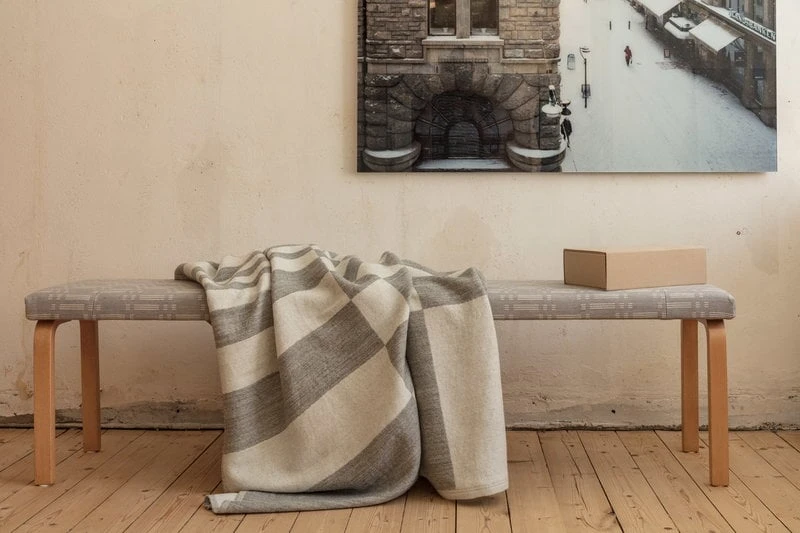 Johanna Gullichsen’s Gaia blanket features a strong, graphic pattern in 100% wool, adding a soft and warm touch of Nordic design to the living room or bedroom décor. Gaia blanket belongs to Johanna Gullichsen’s Normandie collection, inspired by the era of luxury ocean liners and slow, elegant way of traveling.