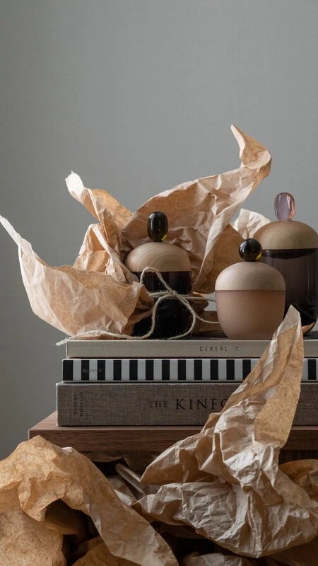 Katriina Nuutinen’s adorable Lyyli boxes combine the traditions of Finnish glassblowing and woodcrafting into a delightful, modern shape. The box is made of blown and colored glass and a rounded wooden lid, and the cherry on the cake is a tiny glass knob with a delicious color. The combination of light birch wood and shiny glass is cute and playful, and it only gets cuter in a group of several different boxes. Measuring 6.5 cm in diameter, the Lyyli boxes can be filled with pastils, paper accessories, clips, jewels and other small treasures.