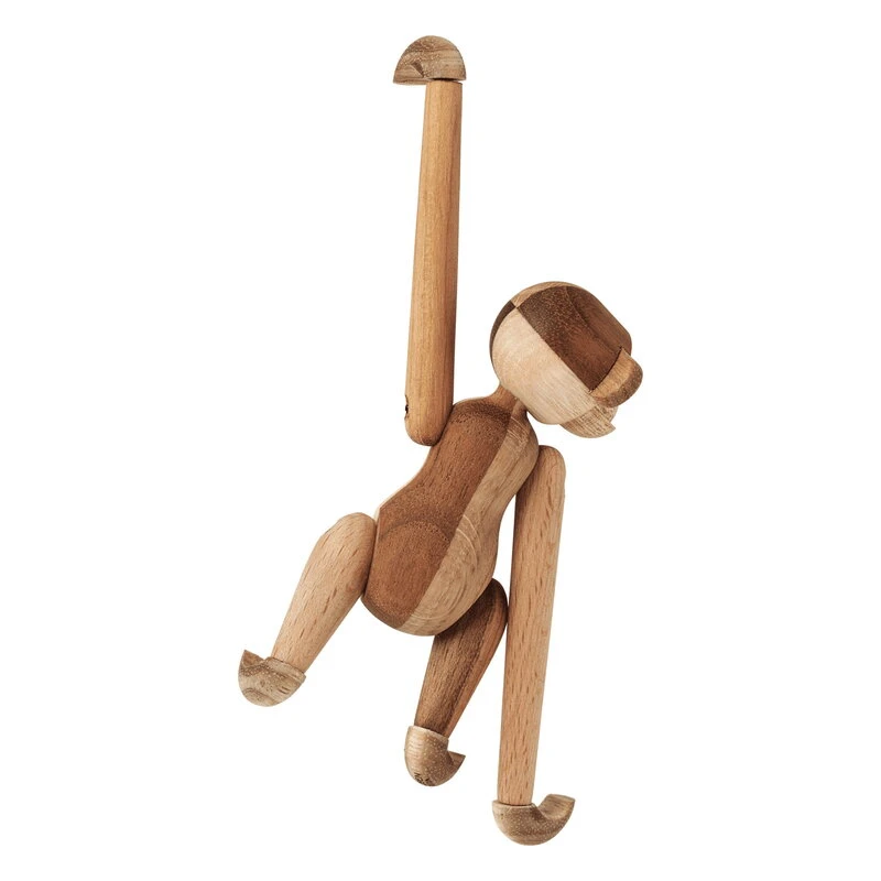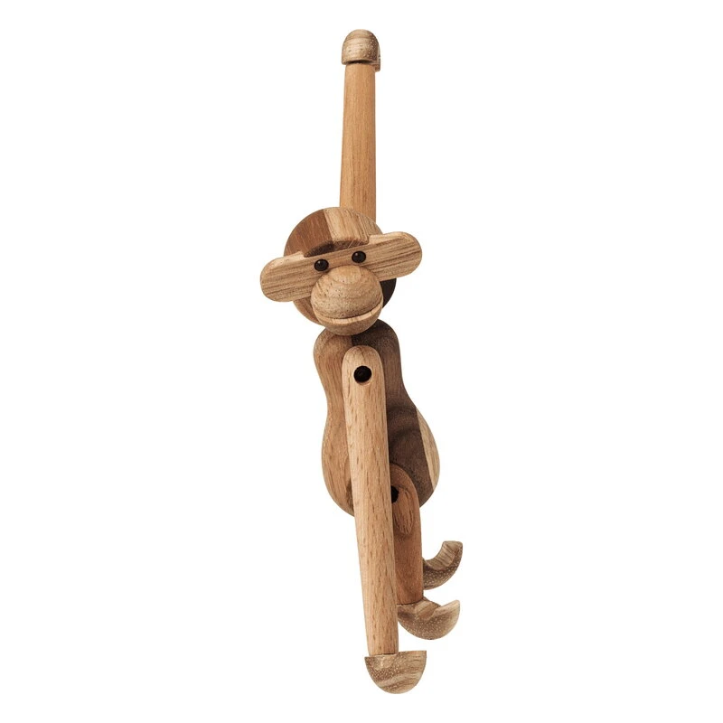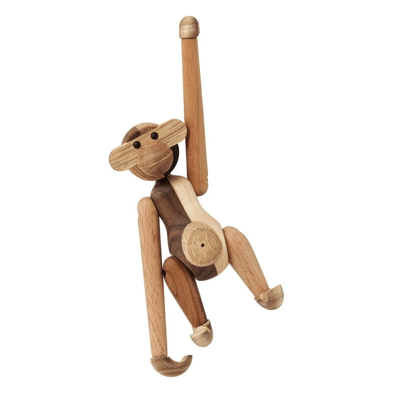 Bojesen’s monkey with its mischievous look and light coloured belly has transformed kids’ rooms into jungles and sparked dreams of far-away places since 1951. It has a permanent role on Danish television as the mascot of wildlife programs and as a prize in quiz shows. Every monkey consists of 31 wooden parts and is crafted by hand in Denmark. Due to slight variation in shade and wood grain, the monkeys have a unique and charming personality.