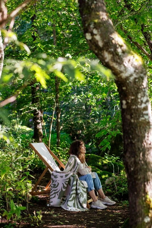 The Kuutamo blanket by Lapuan Kankurit is made of a merino wool and cotton blend that feels luxurious and soft against the skin. Designed by Saara Odele, the pattern in the blanket is inspired by tropical nights in late summer when the forest filters the moon’s warm light – “kuutamo” means moonlight in Finnish. The sweet blanket is perfect to warm up chilly autumn evenings but also works well as a picnic blanket on warm summer days.