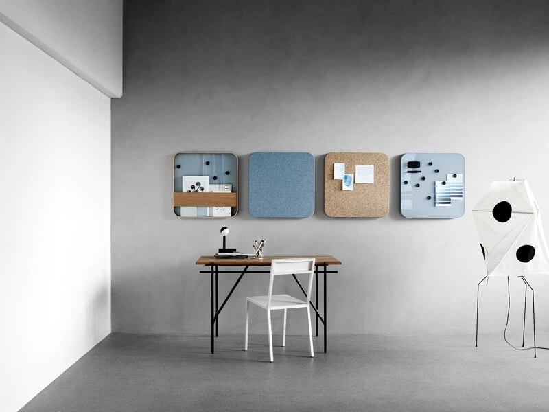 The Lintex Bloc Glass writing board offers a stylish solution for visualizing ideas or holding notes and schedules. Designed by Halleroed and Matti Klenell, the memo board comprises a glass surface with its edges upholstered with Camira’s top-quality felt fabric that, together with the board’s softly rounded shape, gives the writing board a pleasantly cosy look and feel. The magnetic glassboard is ideal for both home and office use either as a stand-alone piece or combined with other notice boards of the Bloc series.