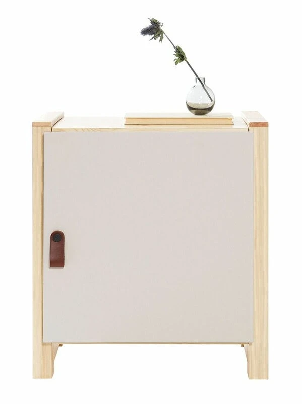 Lundia’s Classic nightstand with door charms with its beautifully simple design for many years to come. The nightstand is made of slowly grown Finnish pinewood that makes it a strong and ecological piece of furniture for your home. The Classic nightstand features a cashmere lacquered door with a leather strap handle. In addition to a table lamp or an alarm clock, the Classic nightstand has space for a lush houseplant and all your magazines, books and other bits and bobs, which can be stored on the open shelf and cabinet.