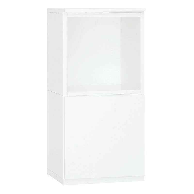 The Fuuga nightstand by Lundia is an elegant, minimalist storage solution for the bedroom. The nightstand consists of two pieces: an open module and a cabinet module with a practical Tipmatic soft-close mechanism.