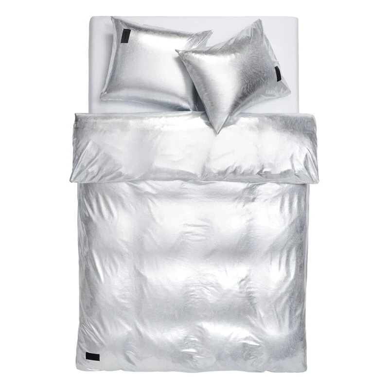 The Nude Metallic Jersey pillowcase by Magniberg adds to the bedroom a touch of disco ball sparkles and pop art influences. The Nude Metallic Jersey bedwear is made from polyester and elastane to achieve a thin, flexible and extremely metallic finish. The dazzling shine of silver is sure to catch the eye and make you smile.