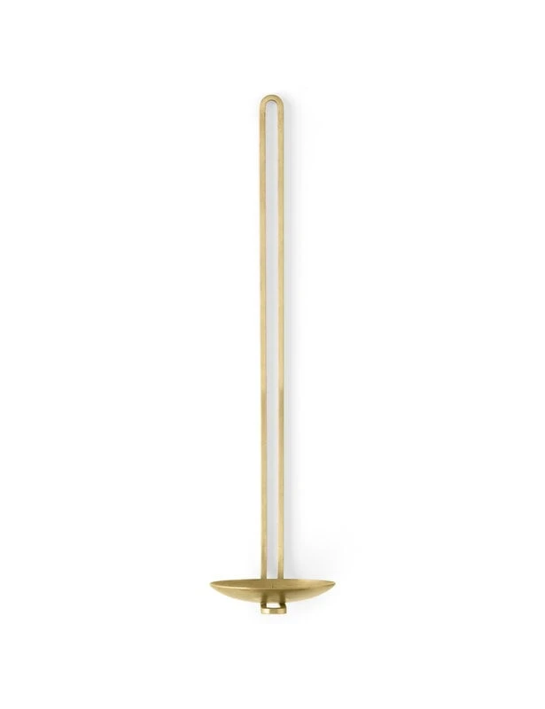 The Clip candle wall sconce by MENU boasts an elegant form inspired by medieval candle holders. Made of brass, the wall candle holder features thin, looping supports and a bowl-like candle dish that holds the candle and catches the dripping wax. The candle holder is designed for both pillar candles and taper candles.
