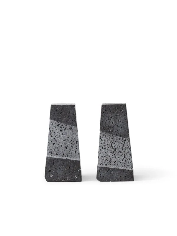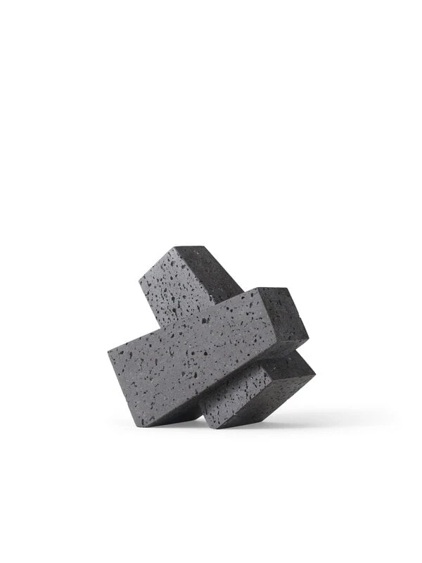 Menu’s Converge bookend is made of lava stone with a dark, irregular surface that adds a unique texture to the beautiful ornament. The bookend consists of two abstract parts that can be used in the original purpose to support the books on the shelf in straight rows, or they can be joined together to create an original sculpture that will delight on a coffee table, shelf or windowsill.