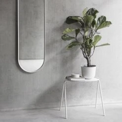 Menu’s Nimbus mirror, designed by Krøyer-Sætter-Lassen, was created based on the Danish design duo’s idea of a framed mirror whose frame would not distract from the mirror itself. The simple and beautiful Nimbus is surrounded by a delicate, halo-like brass frame attached to the mirror with two barely noticeable brass screws. The mirror’s name, Nimbus, was inspired by Greek mythology: the word nimbus referred to the glowing halo or corona surrounding deities.