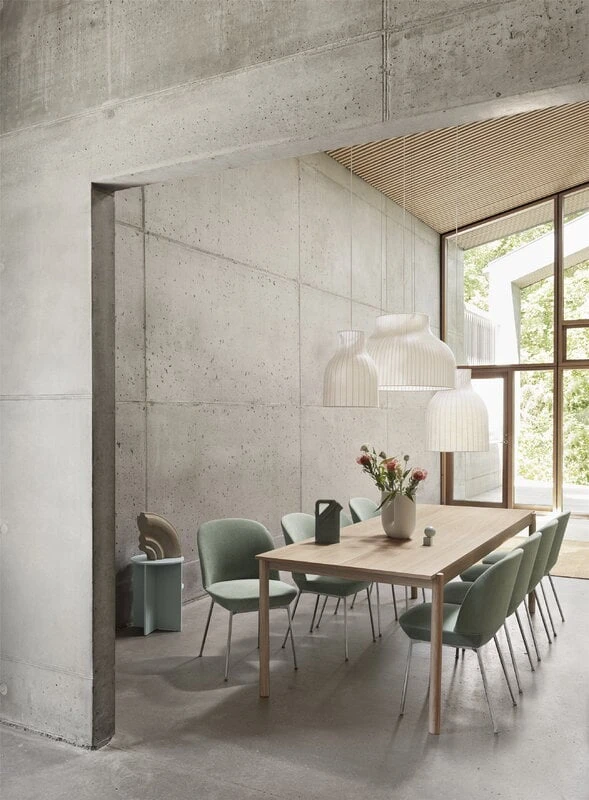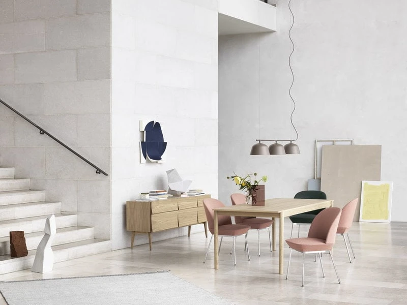 The Linear Wood table by Muuto is characterised by a modern yet timeless expression inspired by the meeting of lines and shapes. The designer, Danish Thomas Bentzen, wanted to unite the warmth of natural wood with a simple, understated shape in order to create a dining set with straight lines that are softened by subtle details like the rounded legs that go all they way to the top. The Linear Wood table is perfect for the kitchen or dining room, but also a great fit for an office or a meeting room. The dining set can be completed with one or two matching benches.
