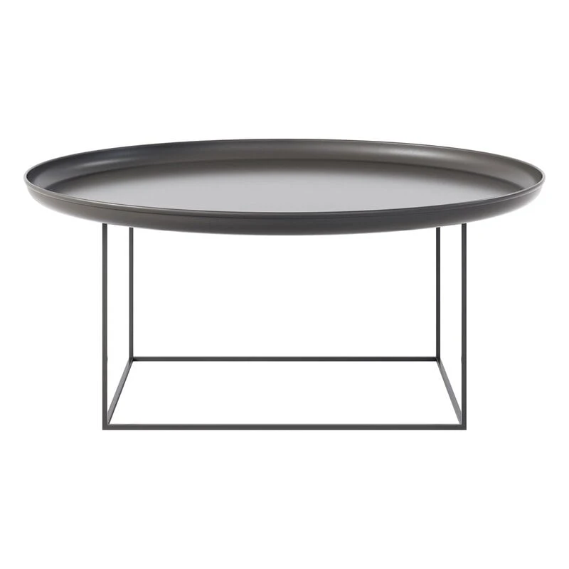 NORR11’s Duke coffee table is a modern and characterful tray table made of powder-coated steel. The Duke coffee table plays with basic geometric shapes, comprising a round tray top with edges and a sleek, rectangular base. The special feature of the Duke coffee table is its adjustable height: when lifting off the tabletop, you can rotate the base to change the height of the table.