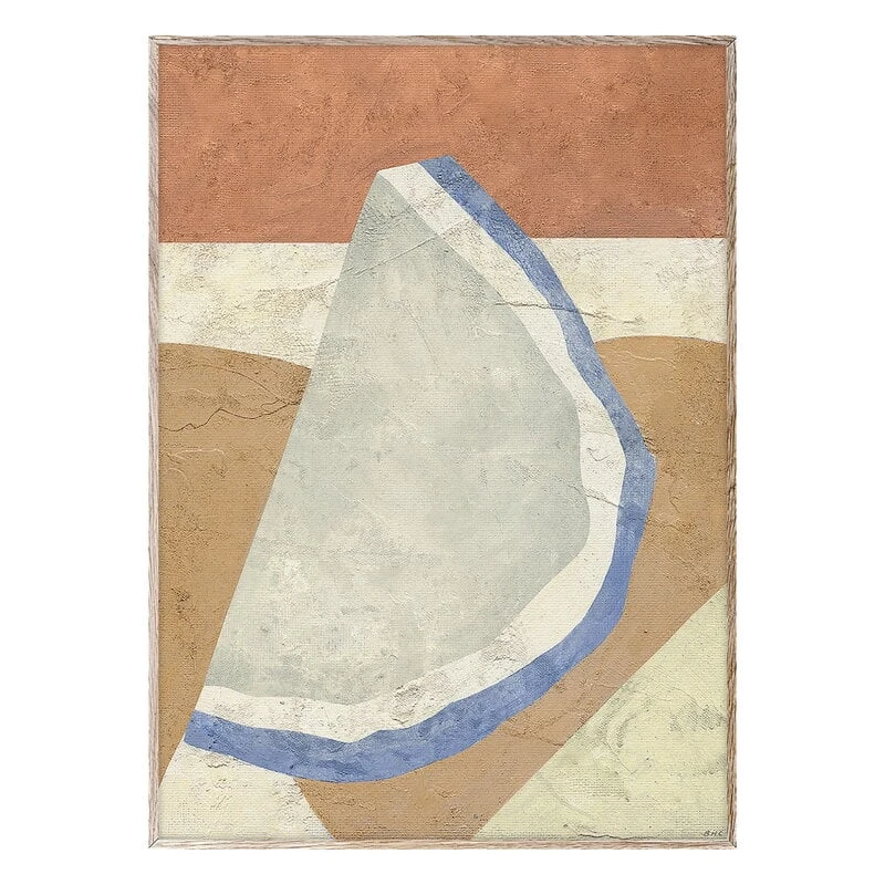 Paper Collective’s Calma 01 poster features a soft, toasted colour palette drawing inspiration from artist Berenice Hernandez’s homeland, Mexico. At the heart of the textured art poster is a slice of exotic fruit, whose soothing cool tones create an interesting contrast with the warm backdrop.