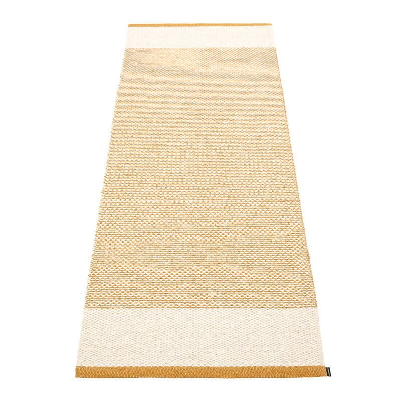 Made of phthalate-free PVC ribbon, the plastic rug is easy to clean and makes a practical choice for all spaces. Due to its narrow form, the rug can easily be put to use as a stunning hallway runner, a kitchen area rug or an outdoor rug. The Edit rug is woven using traditional techniques in Dalarna, Sweden.