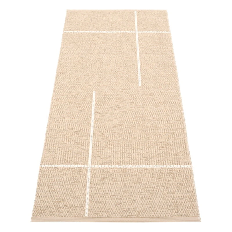 Pappelina’s Fred rug features a simple intersecting stripe pattern that creates intriguing geometrical forms together with the background. A two-sided design equals double the fun: you can flip the carpet over when you feel like it’s time for a new colour. The double-folded edges are hemmed with a strong seam.