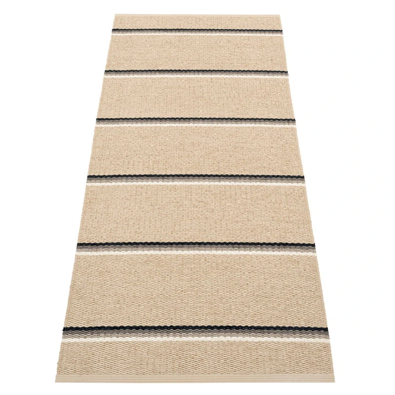 Pappelina’s Olle rug features an earthy background colour with a stripe pattern woven in several different hues. The double-folded edges are hemmed for strength and durability.