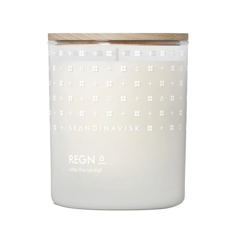 Skandinavisk’s scented candle Regn reminds you of the moments after rain when nature seems to breathe. Regn, a Nordic word for rain, has notes of wet grass and misted peony flowers as well as damp earth and cobblestones, carrying your thoughts to brisk summer showers and the calmness of an autumn mist.