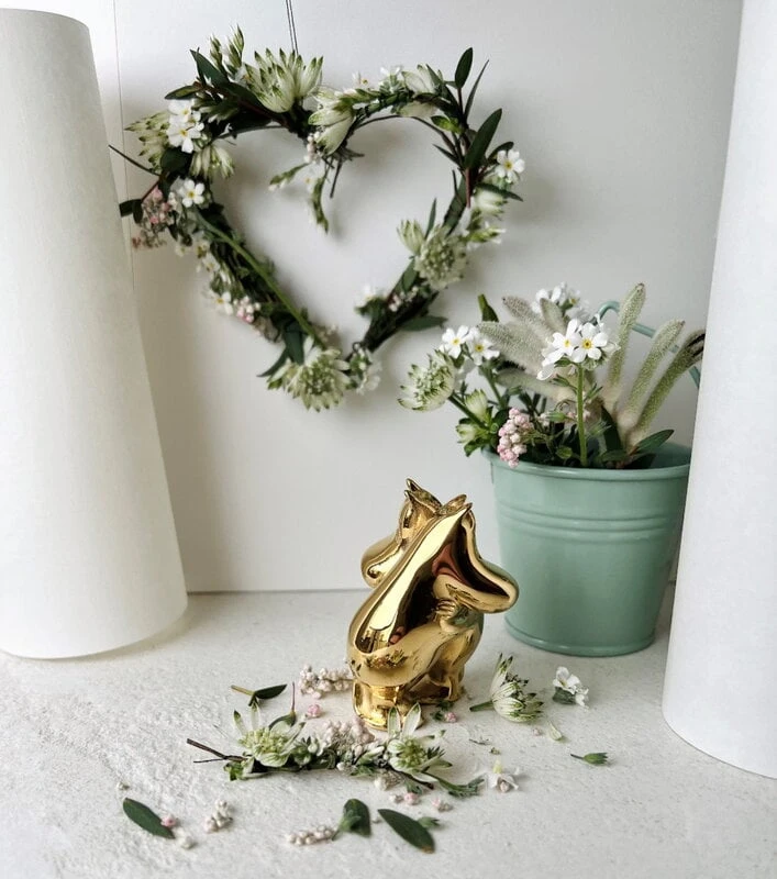 Skultuna’s Moomintroll & Snorkmaiden figurine is part of the Moomin x Skultuna collection. Tove Jansson’s most beloved Moomin characters have been given an elegant golden glow: the small sculptures are made of steel and plated with genuine 18-carat gold. The high-quality materials and luxurious finish make the figures timeless and durable – they bring a dose of playful elegance to everyday life, both in the children’s room and in other rooms of the home. Brighten up your desktop with your favourite characters or decorate your bookshelf with the entire Moomin Family! The embracing characters also make a great wedding or engagement gift or a present for your own significant other.