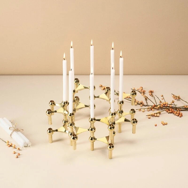 Danish STOFF Copenhagen has relaunched the elegant STOFF Nagel candleholder designed by architect Werner Stoff for metalworker Hans Nagel in the 1960s. Nagel got the idea for the candleholder after tumbling into snow at a skiing vacation in the Alps – the three finger-holes in the snow later turned into the triangular shape of STOFF Nagel. The modular candleholders can be combined into beautiful, sculptural constructions that will catch the eye with and without candles.