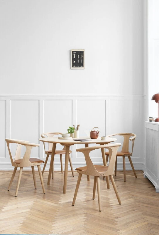 &Tradition’s In Between dining table is an elegant addition to the wooden furniture collection designed by Sami Kallio. The round In Between SK4 table repeats the curved shapes and sloping legs of the In Between chairs. A result of designer Kallio’s love for Scandinavian heritage and woodworking, the In Between table is made of strong and characterful oak wood with traditional techniques such as woodturning. The light design and detachable legs give the table a modern finish and allow it to be transported and stored flat-pack.