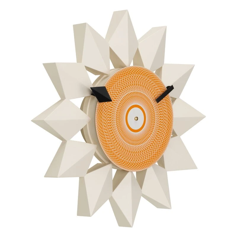 Vitra’s Diamond Markers Clock attracts the eye with its abstract- flower-like form made up of a hypnotic orange circle surrounded by diamond-shaped petals. The high-quality quartz movements and carefully designed details make the clock a reliable timepiece as well as a stunning decorative item.