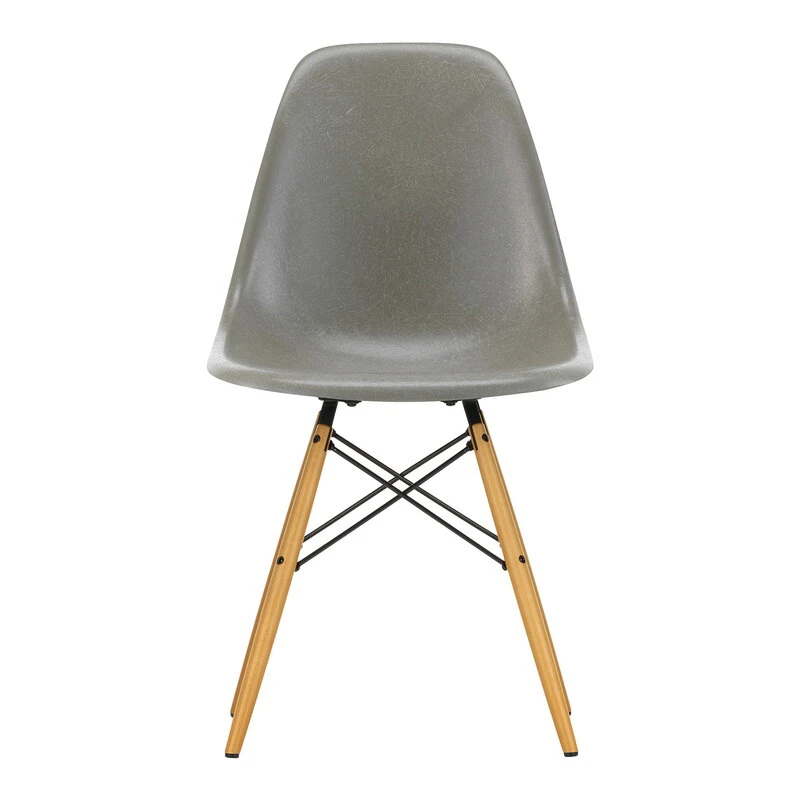 Designed by Charles and Ray Eames, the plastic Eames chairs are true design icons of the 1950s. Their popularity lies in the timeless, ergonomic design and various leg options. The original model with a fibreglass shell was the first industrially produced plastic chair – its durability, comfortability and moulded one-piece shell made it a huge success. The irregular surface with clearly visible fibres give the chair an organic character. Eames Fiberglass Chair, first introduced in 1950, is now manufactured by Vitra in the original colours developed by Charles and Ray Eames.