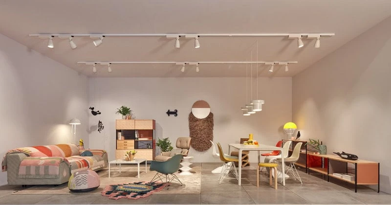 Vitra’s Eames Storage Unit (ESU) catches the eye with its bright panels and slim, metallic cross structures. The versatile, freestanding storage units are available in four different heights, and they function as bookshelves as well as room dividers and side tables. The metal legs can be individually adjusted to fit uneven floors.