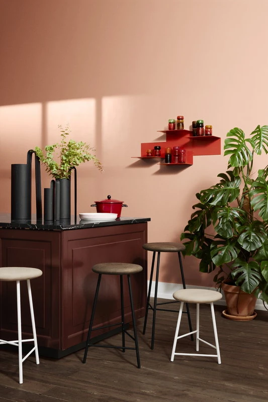 Pebble bar stool by Warm Nordic was named after its smooth, slightly asymmetric and organically shaped wooden seat that is reminiscent of small pebbles found in ocean beaches. The unique wood grain patterns emphasize the natural expression of the stool. Designed by Welling/Ludvik, the Pebble bar stools stand on a robust yet slim metal frame with three legs. The horizontal bars provide a good seating pose for people of different heights.