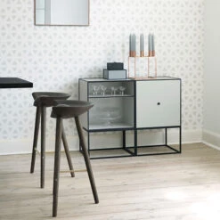 The Pause counter chair from Woud, with its simple wooden structure and elegant joints, is the embodiment of modern Nordic design. Finnish designer Kasper Nyman has created the Danish brand a beautiful oak chair that features clean lines and a broad, rectangular backrest. Pause is made of solid oak and oak veneer and available in white-pigmented lacquer and colourful painted finishes. The timeless design of Pause bar stool pairs easily with both, modern and more traditional kitchen counters and bar tables.